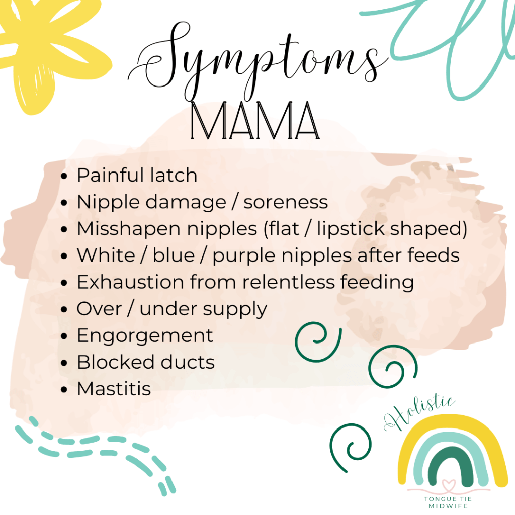 If you have been told by hospital staff that your baby doesn’t have a tongue tie, or has ‘a little bit of a tongue tie’, but you and/or your baby are experiencing any of the symptoms listed below, then please reach out for help – you know your baby best.