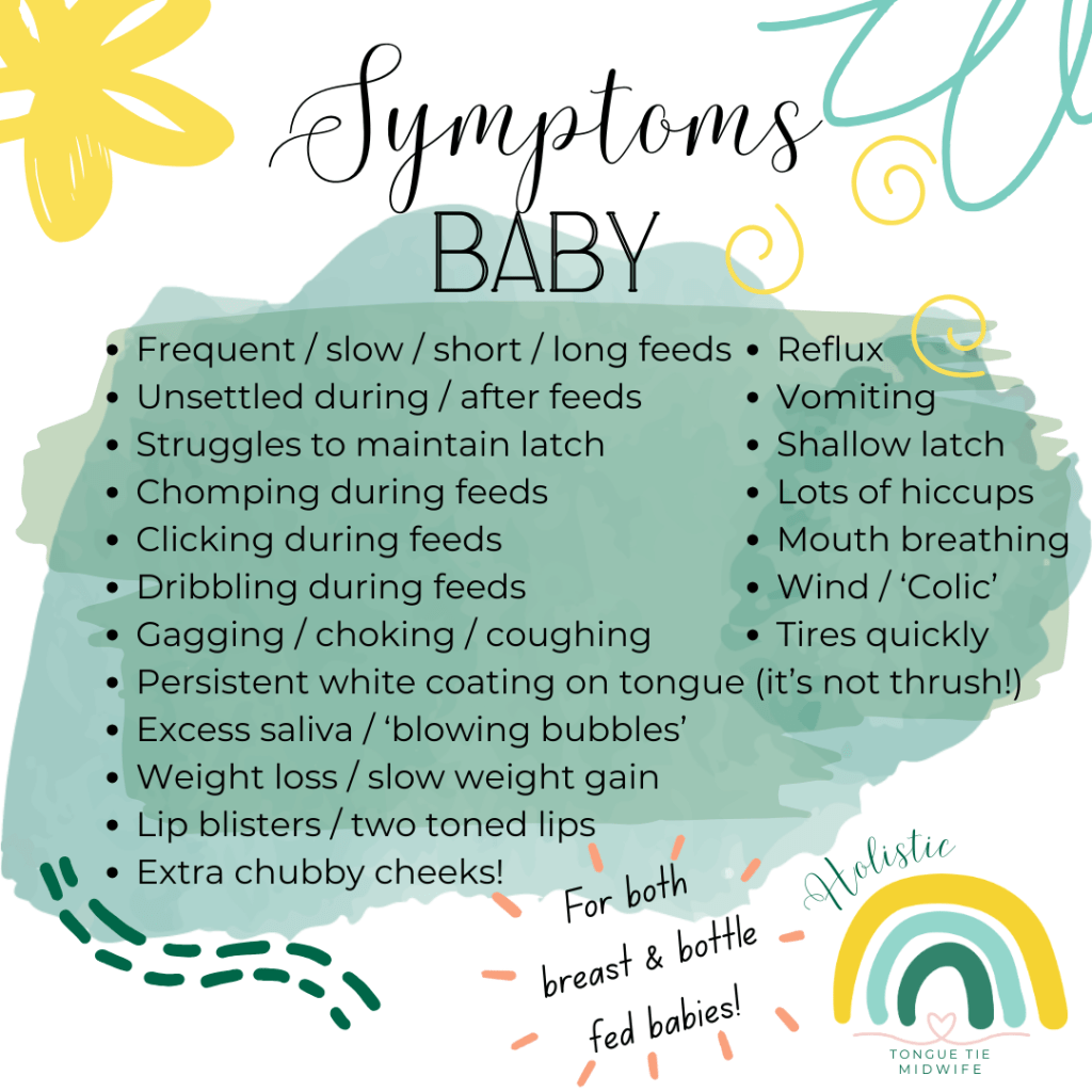 Scroll down to see baby tongue tie symptoms as well as tongue tie symptoms for mums.