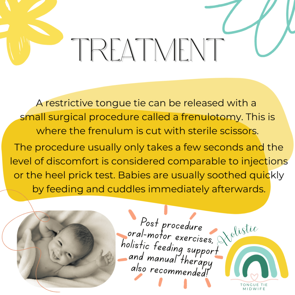 You will be given detailed feeding support after the procedure, advice on aftercare for your baby, and exercises you can do to build strength and help them to learn how to use their tongue with it’s new found freedom!